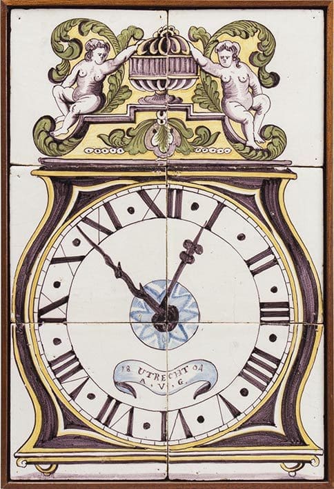 Tegeltableaus met daarop afgebeeld een klok zijn gemaakt in Rotterdam en Utrecht, in de periode tweede helft 18de eeuw tot en met het eerste kwart van de 19de eeuw. Ze zijn hoogst zelden gesigneerd of van een monogram voorzien. Het klokkentableau dat de OKS aan haar collectie heeft toegevoegd heeft zowel een monogram als een datum. Hierdoor weten we dat het tableau in 1804 is vervaardigd door Abraham van Griethuizen, bij de tegelbakkerij Agter ’t Weystraat in Utrecht. Er zijn nog twee tableaus mét monogram van Van Griethuizen bekend; deze bevinden zich beide in Duitse musea.