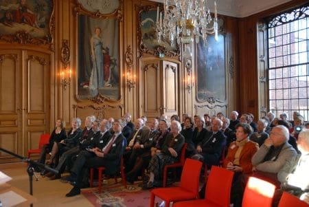 Interessant was de discussie die zich ontspon na afloop van haar lezing. Marlies Stoter toonde een met rococo-elementen versierde proefbandbeker van Gabynus van der Lely, een object dat een leerling zilversmid moest vervaardigen als proeve van bekwaamheid om meester te kunnen worden. De door haar getoonde beker draagt een meesterteken en omdat Van der Lely in 1731 meester werd zou de beker dus ook in dat jaar moeten zijn vervaardigd. Een aantal aanwezigen wees er echter op dat het niet gebruikelijk is dat een proefband een meesterteken bevat: De zilversmid is op het moment van vervaardigen immers nog geen meester. Ook werd aangegeven dat het voorkomen van rococo-motieven in 1731 welhaast onwaarschijnlijk vroeg is.